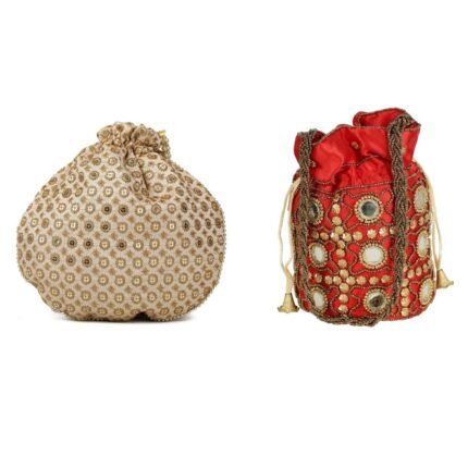 Combo – Designer Embroidered Potli Bag – Golden & Red