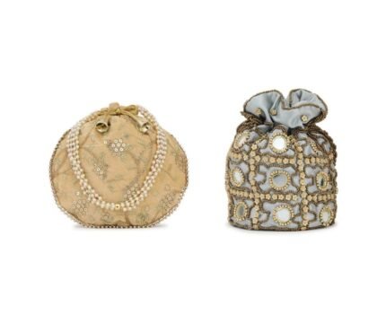 Combo – Designer Embroidered Potli Bag – Yellow & White