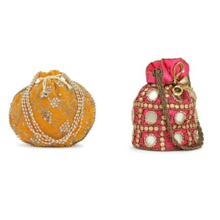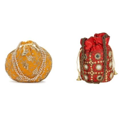 Combo – Designer Embroidered Potli Bag – Yellow & Red