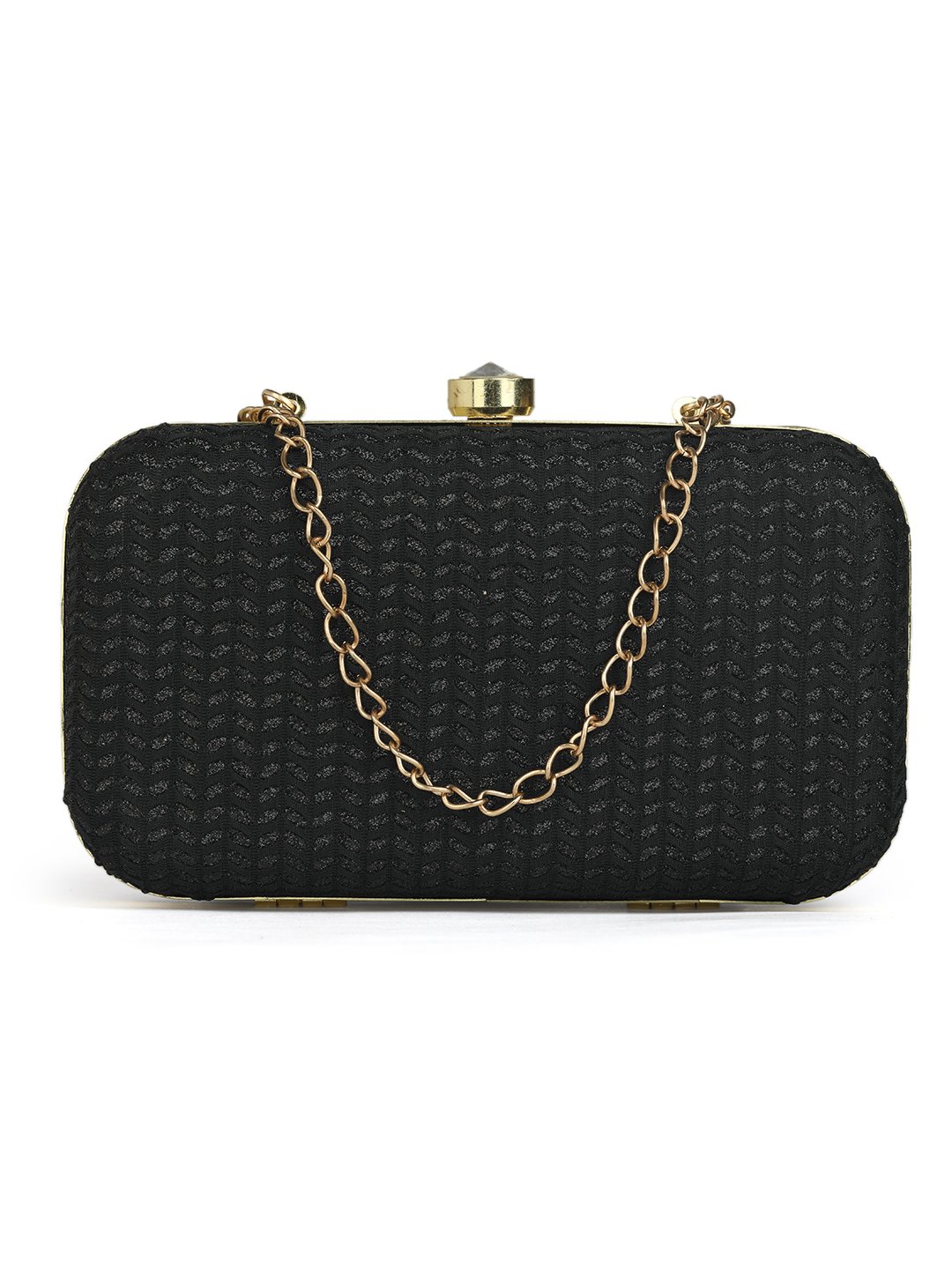 Blackembroidered box clutches Has shoulder strap, 1 main compartment with twist closure