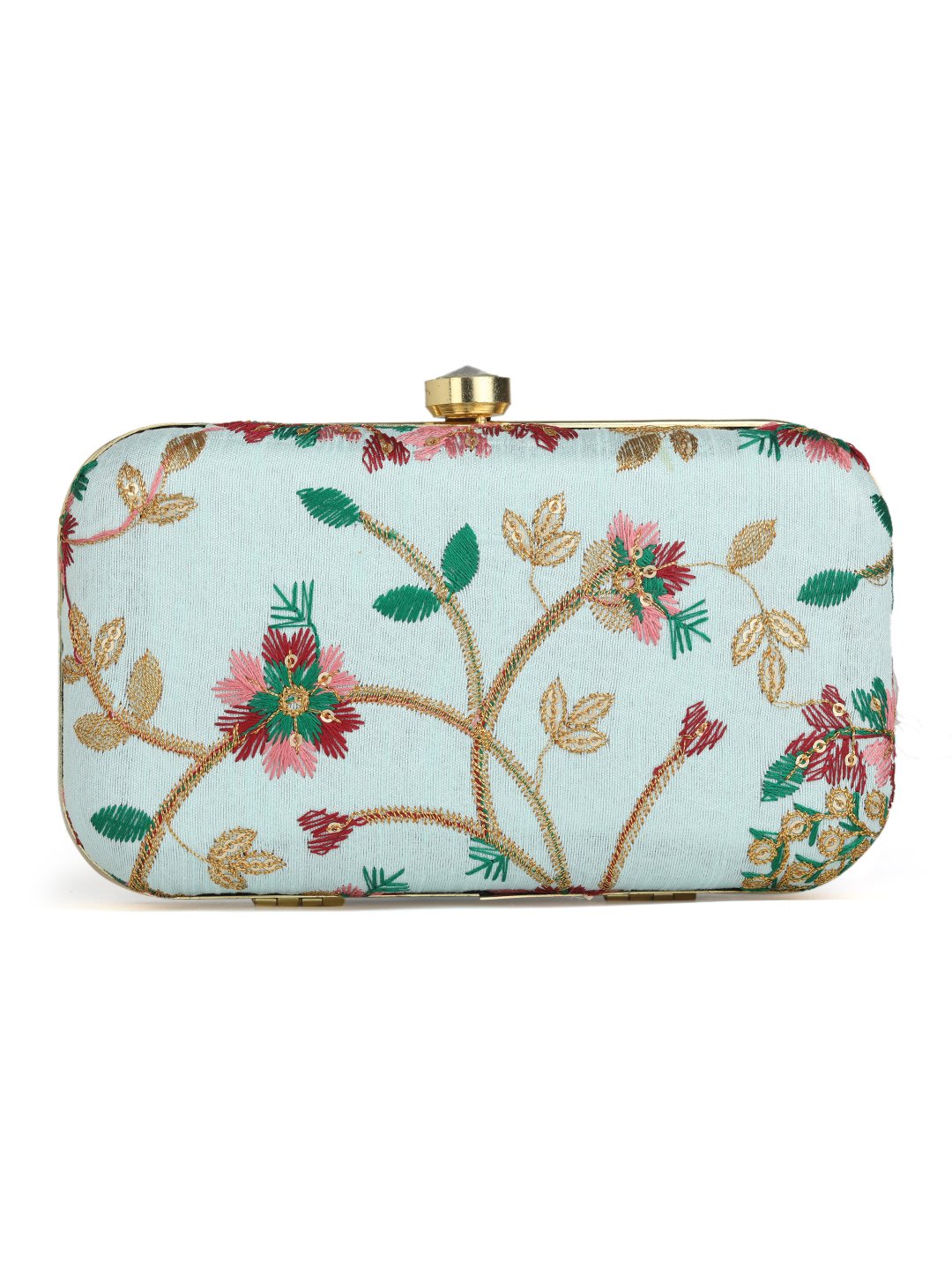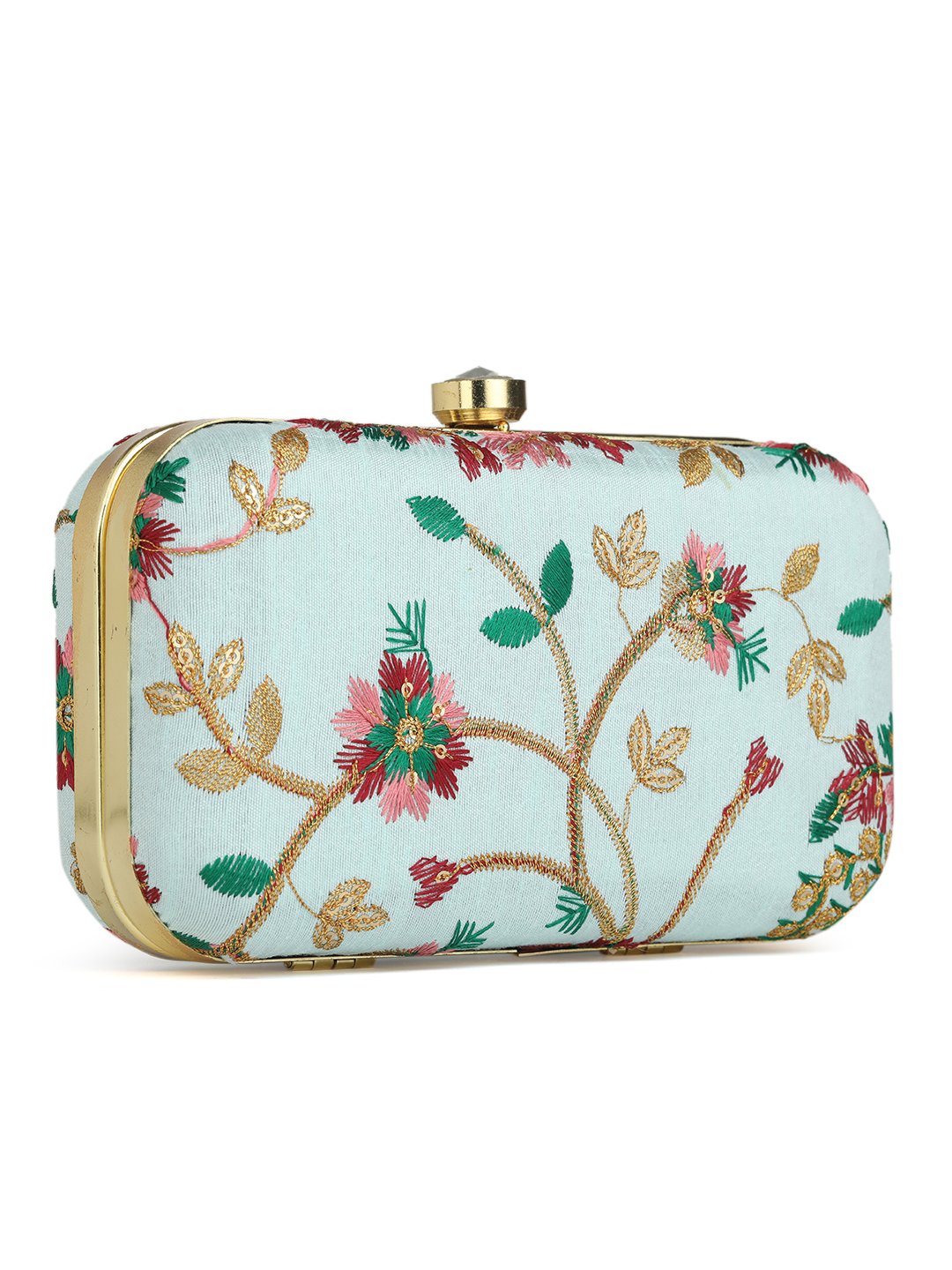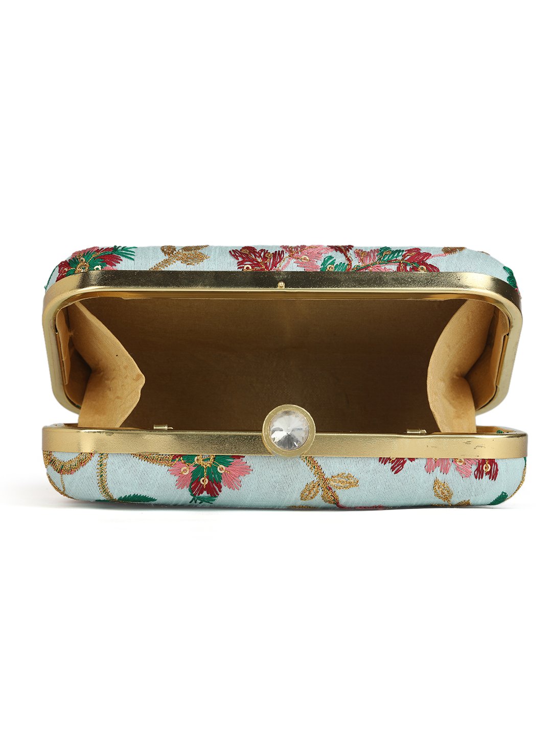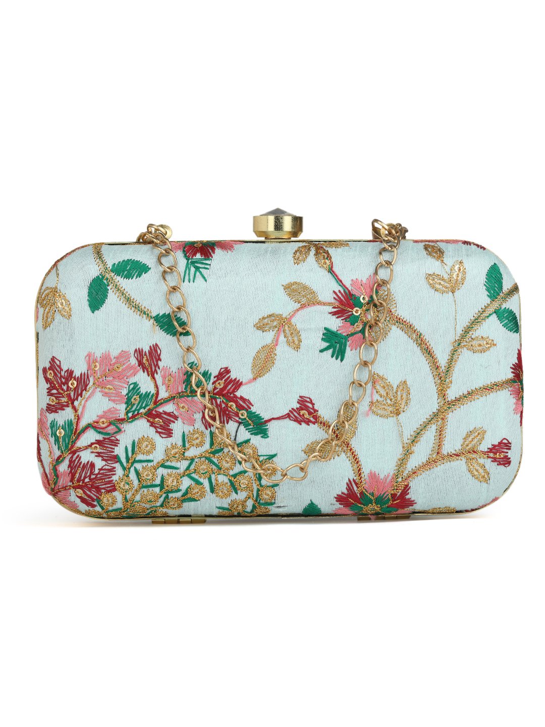 Off White & Goldembroidered box clutches Has shoulder strap, 1 main compartment with twist closure