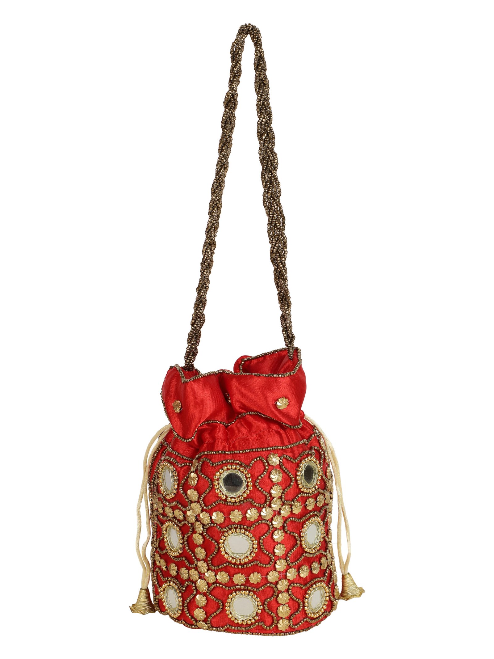 Home W_Bags Potlis PK 2 Combo – Designer Embroidered Potli Bag – Golden & Red