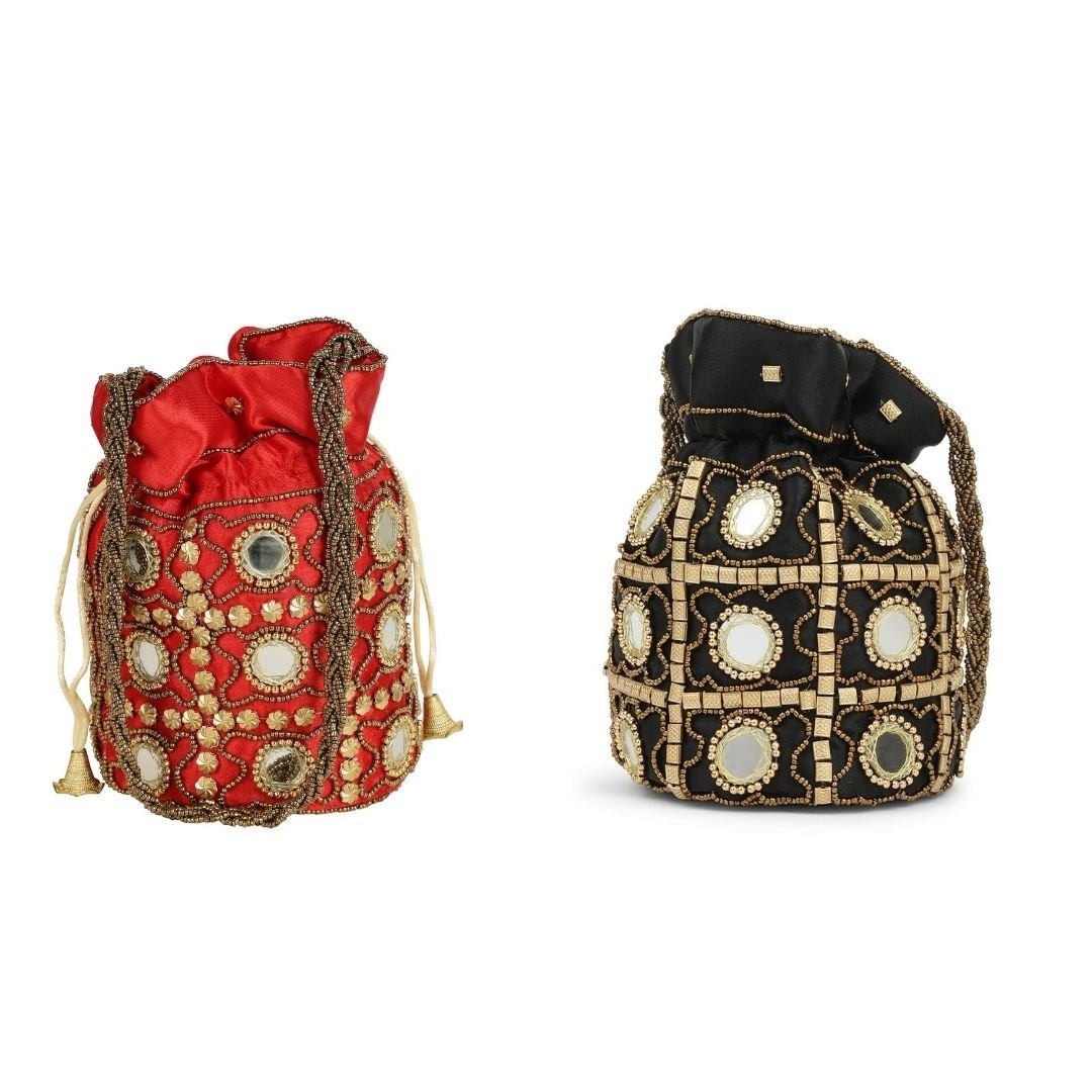 Home W_Bags Potlis PK 2 Combo – Designer Embroidered Potli Bag – Red & Black