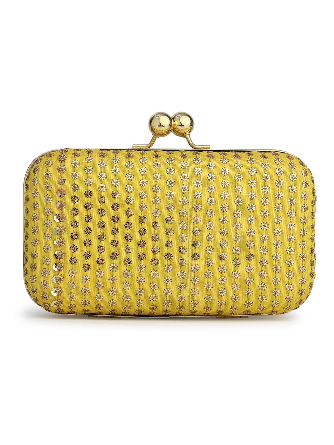 Combo Of Boho Bag And Yellow & Gold Embroidered Box Clutches For Girls and womens