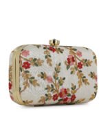 Home W_Bags Clutches Off White Embroidered Box Clutch For Girls and womens