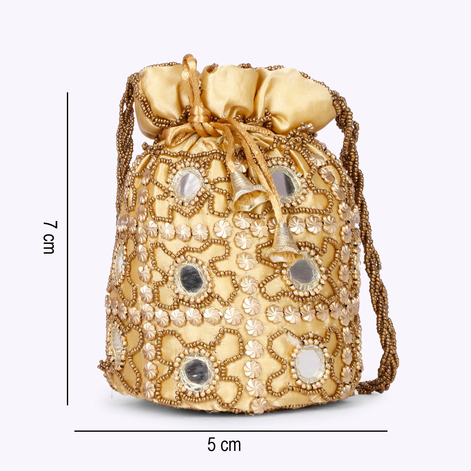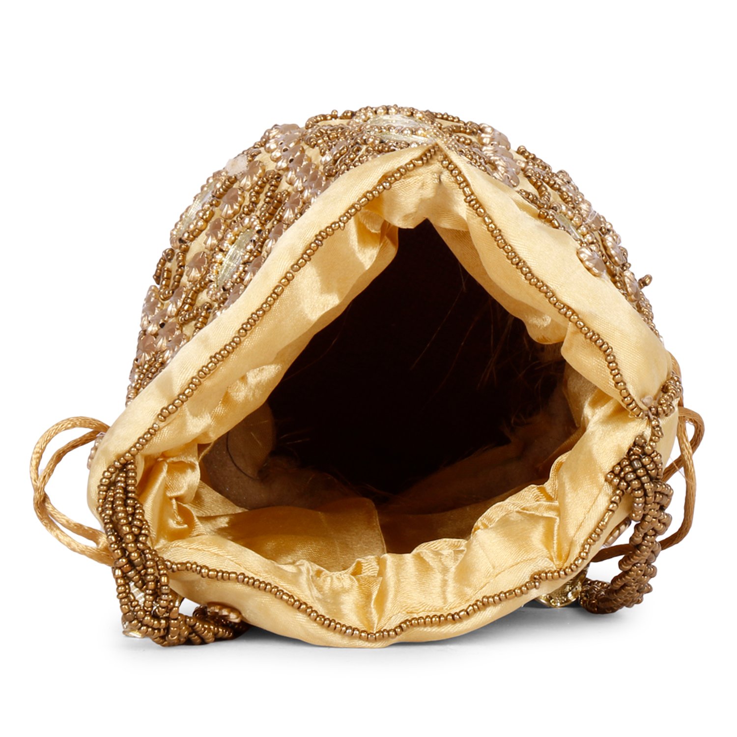 Gold-toned embellished potli clutches Has wrist loop 1 main compartment with drawstring closure