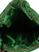 Green and gold-toned embellished potli clutches Has wrist loop 1 main compartment with drawstring closure Size & Fit 18 x 2 x 10 cm Material & Care Wipe with clean, dry cloth
